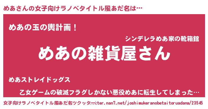 | 男性向けラノベタイトル風あだ名 | 『やはりめあの青春ラブコメはまちがっている 』 |