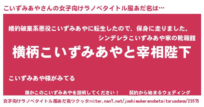 | 男性向けラノベタイトル風あだ名 | 『こいずみあやに滅ぼされるだけの簡単なお仕事です』 |