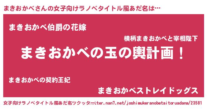 | 男性向けラノベタイトル風あだ名 | 『まきおかべ~年齢イコール彼女いない歴の魔法使い~』 |