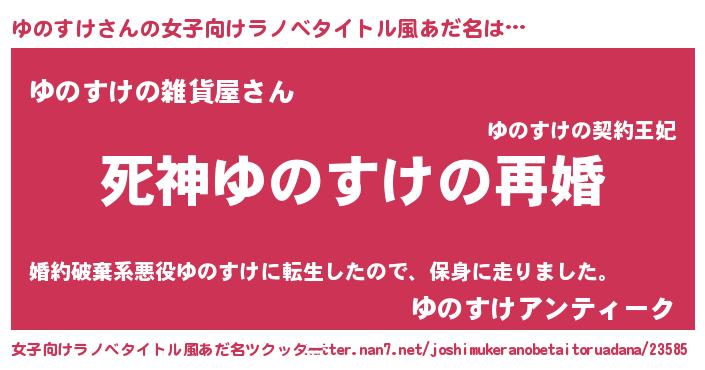 | 男性向けラノベタイトル風あだ名 | 『ノーゲーム・ノーユノスケ』 |