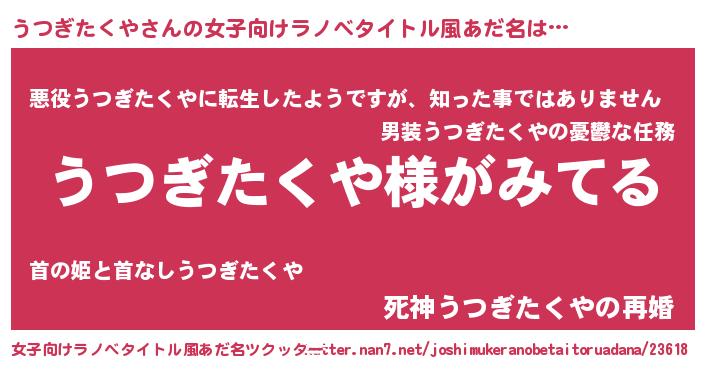 | 意味不明あだ名 | 『とにかく怪しいうつぎたくや』 |