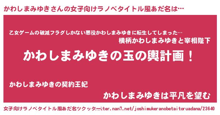 | 男性向けラノベタイトル風あだ名 | 『転生したらかわしまみゆきだった件』 |