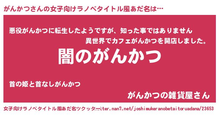 | 意味不明あだ名 | 『自称がんかつ』『がんかつフォーエバー』 |
