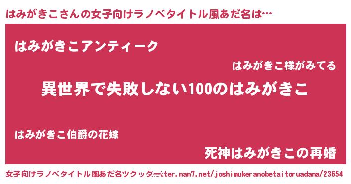 | ヘコむあだ名 | 『はみがきこ(震え声)』『はみっぺ』 |