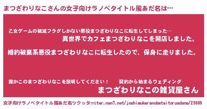 | 男性向けラノベタイトル風あだ名 | 『転生したらまつざわりなこだった件』 |