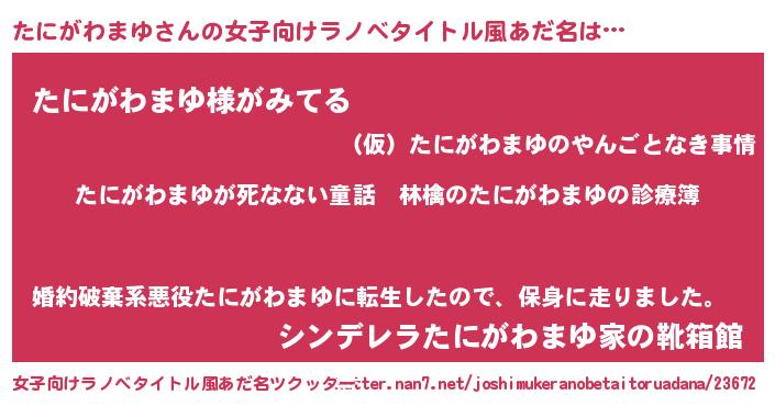 | 料理風あだ名 | 『たにがわまゆのカルパッチョ風』 |
