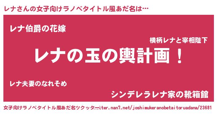 | ヒーロー風カッコイイあだ名 | 『ウルトラレナマン』『愛の使者レナ』 |