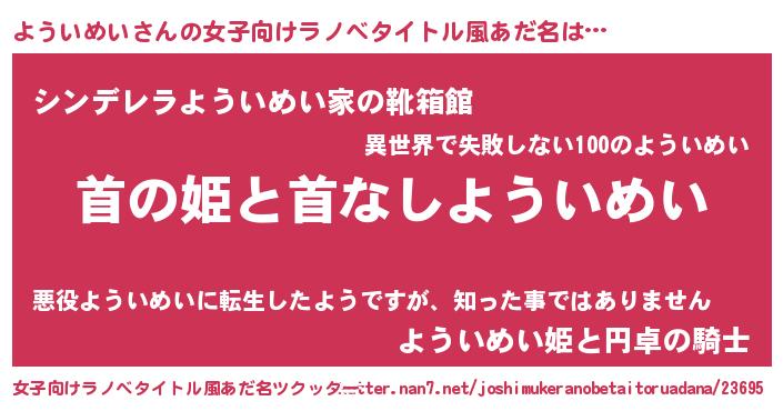 | 男性向けラノベタイトル風あだ名 | 『はたらくよういめいさま!』 |
