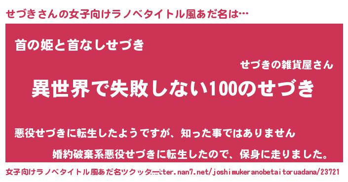 | 胡散臭い通販商品みたいなあだ名 | 『絶対に幸福をもたらす招き猫…その名も「せづき」』 |