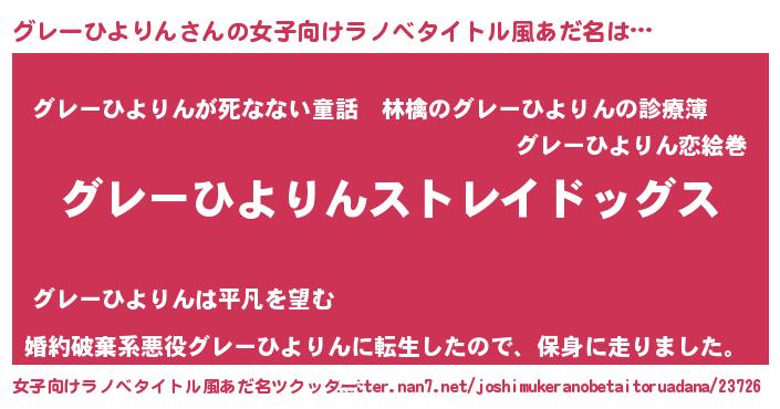 | 男性向けラノベタイトル風あだ名 | 『Re:グレーひよりんから始める異世界生活』 |