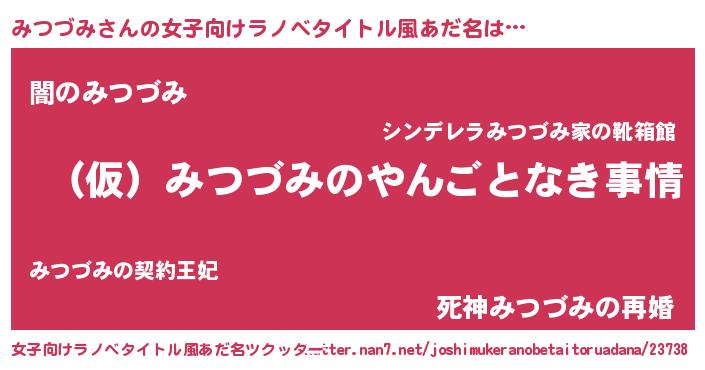 | 胡散臭い通販商品みたいなあだ名 | 『必ず成功するブレスレット…その名も「みつづみ」』 |