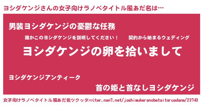 | 胡散臭い通販商品みたいなあだ名 | 『伝統あるサプリメント…その名も「ヨシダケンジ」』 |