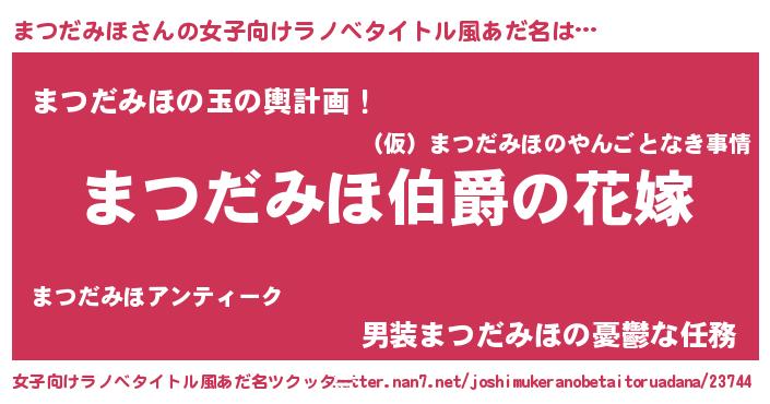 | 男性向けラノベタイトル風あだ名 | 『やはりまつだみほの青春ラブコメはまちがっている 』 |