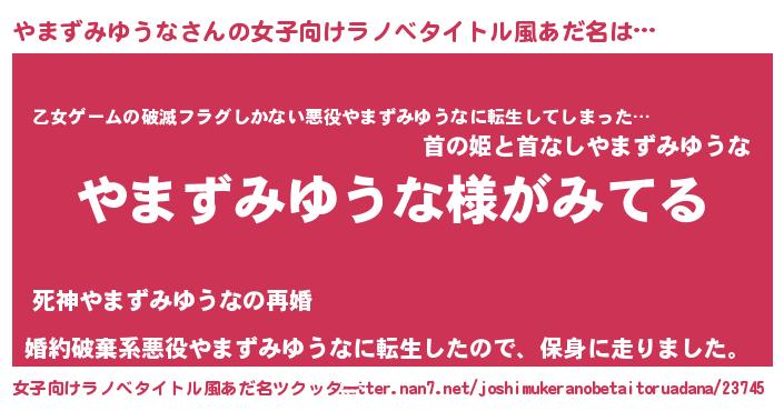 | 胡散臭い通販商品みたいなあだ名 | 『全米が絶賛したペンダント…その名も「やまずみゆうな」』 |