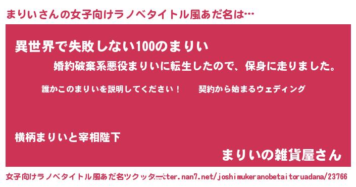 | 男性向けラノベタイトル風あだ名 | 『マリイアートオンライン』 |