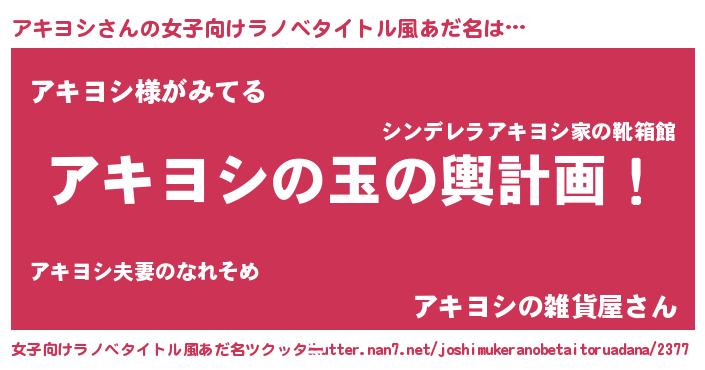| ヘコむあだ名 | 『アキ太郎』『レバニラ』『アキにー』 |