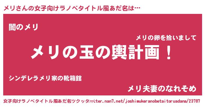 | ヒーロー風カッコイイあだ名 | 『最強戦士メリ』『慈愛の使者メリ』 |