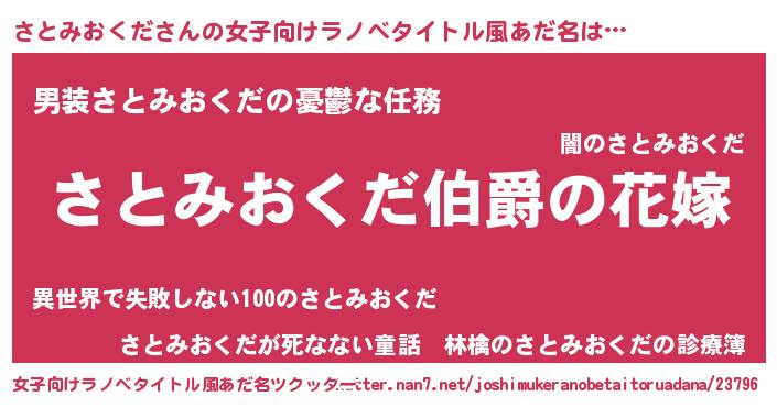 | 男性向けラノベタイトル風あだ名 | 『やはりさとみおくだの青春ラブコメはまちがっている 』 |