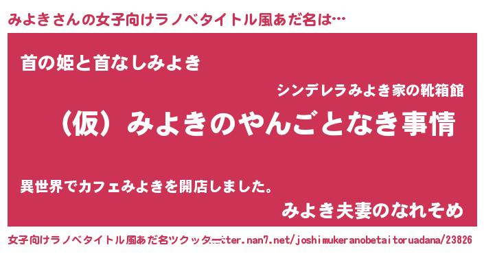 | 男性向けラノベタイトル風あだ名 | 『みよきの憂鬱』『はたらくみよきさま!』 |
