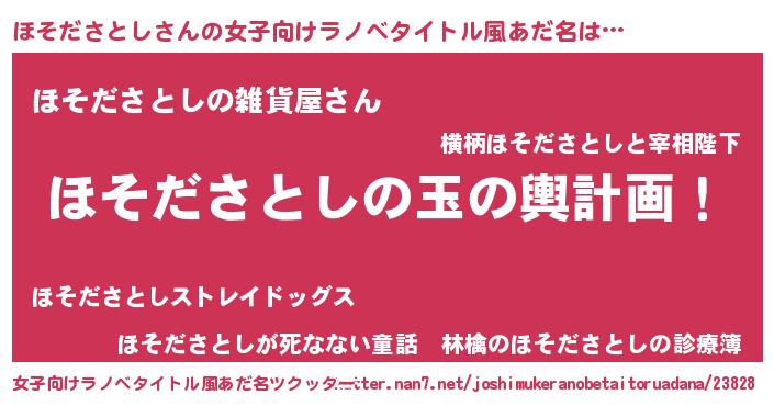 ほそださとしさんの女子向けラノベタイトル風あだ名