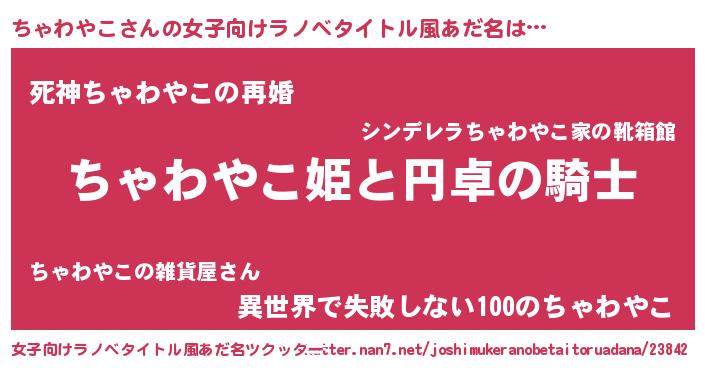 | 男性向けラノベタイトル風あだ名 | 『ちゃわやこの憂鬱』『緋弾のチャワヤコ』 |