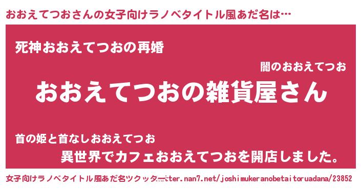 | 男性向けラノベタイトル風あだ名 | 『やはりおおえてつおの青春ラブコメはまちがっている 』 |