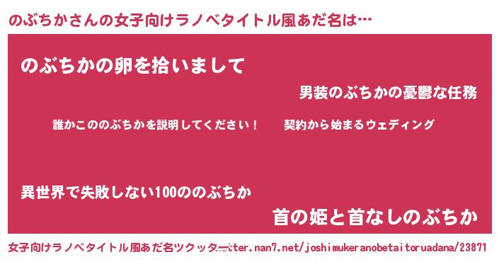 | 男性向けラノベタイトル風あだ名 | 『ノブチカアートオンライン』 |