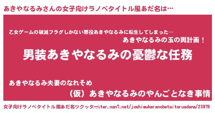 | 男性向けラノベタイトル風あだ名 | 『うちのあきやなるみが世界を掌握している!』 |