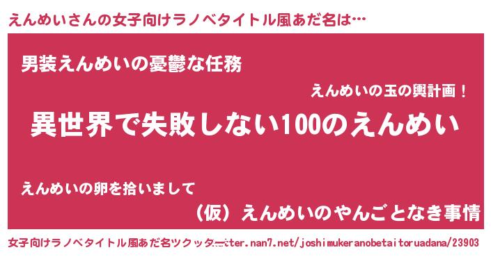 | 男性向けラノベタイトル風あだ名 | 『えんめいという概念が存在しない退屈な世界 』 |