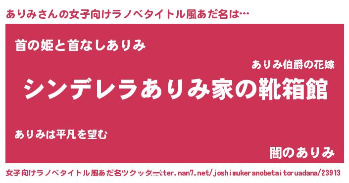 | ヒーロー風カッコイイあだ名 | 『サイバー戦士アリミ』『幻影騎士アリ』 |