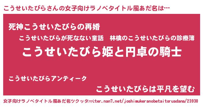 | 胡散臭い通販商品みたいなあだ名 | 『モテモテ間違いなし水晶球…その名も「こうせいたびら」』 |