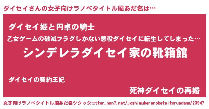 | 男性向けラノベタイトル風あだ名 | 『緋弾のダイセイ』『魔弾の王とダイセイ』 |