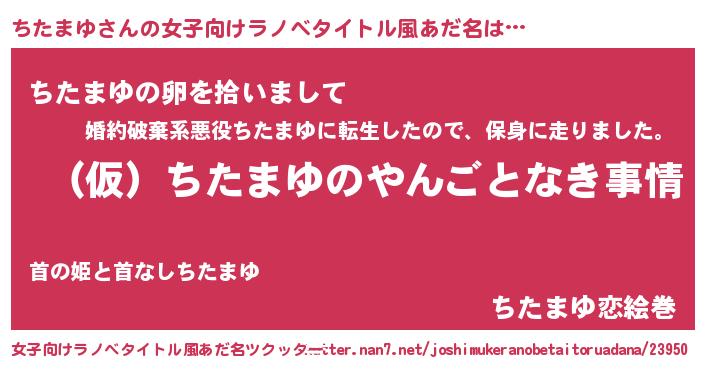 | 胡散臭い通販商品みたいなあだ名 | 『必ず成功するブレスレット…その名も「ちたまゆ」』 |