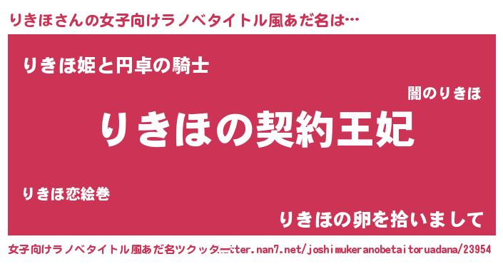| 男性向けラノベタイトル風あだ名 | 『誰もが恐れるあのりきほが、ぼくの専属メイドになるようです。』 |