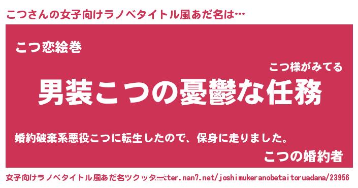 | 男性向けラノベタイトル風あだ名 | 『うちのこつが世界を掌握している!』 |