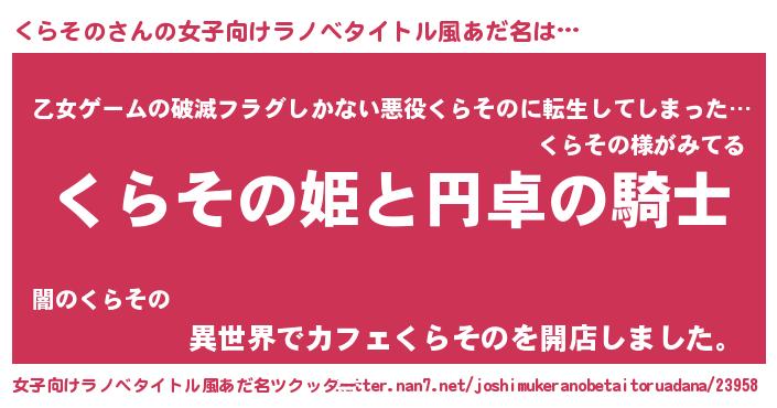 | 男性向けラノベタイトル風あだ名 | 『クラソノアートオンライン』 |