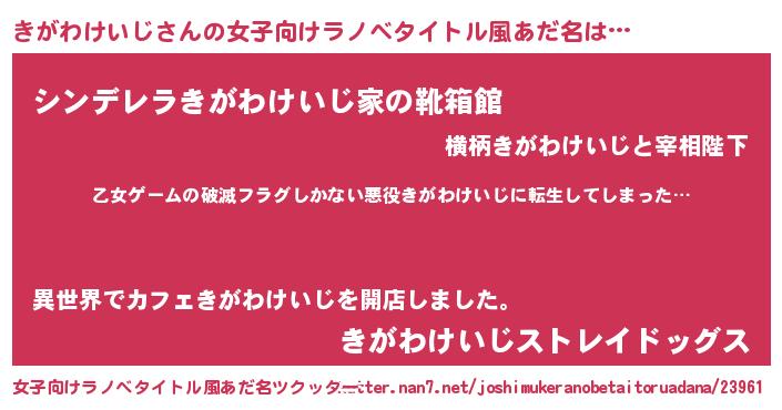 | 男性向けラノベタイトル風あだ名 | 『この素晴らしい世界にきがわけいじを!』 |