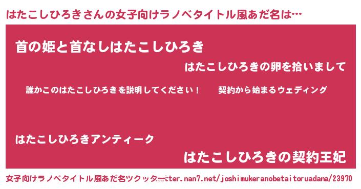 | 胡散臭い通販商品みたいなあだ名 | 『億万長者になれる水晶球…その名も「はたこしひろき」』 |