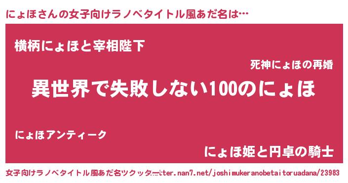 | 胡散臭い通販商品みたいなあだ名 | 『絶対に幸福をもたらす水素水…その名も「にょほ」』 |