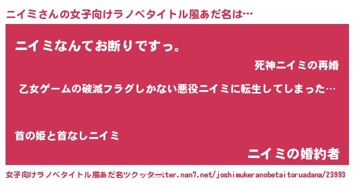 | 男性向けラノベタイトル風あだ名 | 『この素晴らしい世界にニイミを!』 |