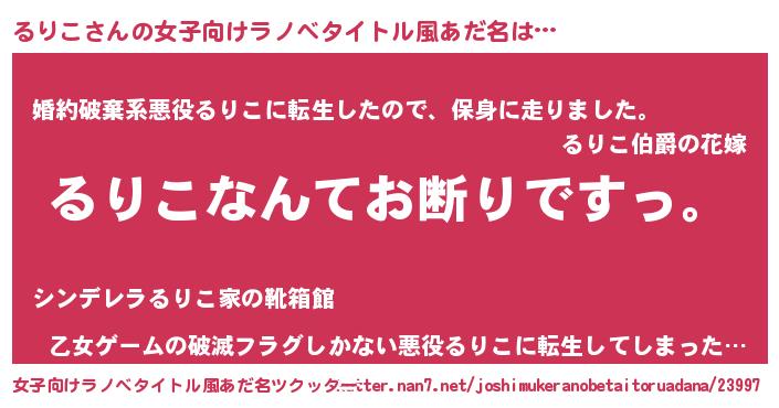 | 男性向けラノベタイトル風あだ名 | 『魔法科高校のるりこ』『緋弾のルリコ』 |