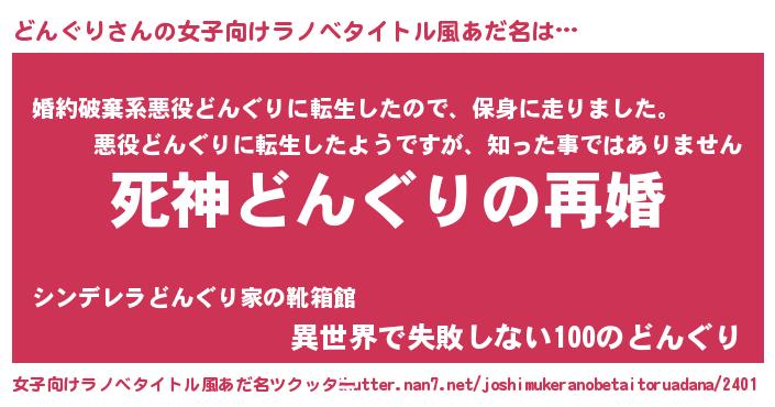| 男性向けラノベタイトル風あだ名 | 『ノーゲーム・ノードングリ』 |