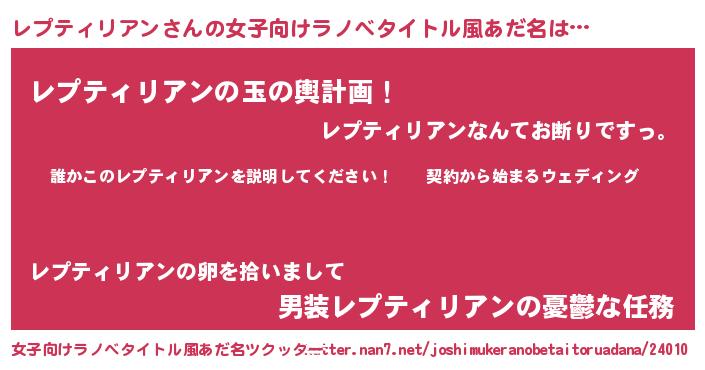 | 胡散臭い通販商品みたいなあだ名 | 『億万長者になれる水晶球…その名も「レプティリアン」』 |