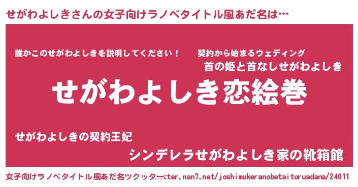 | 男性向けラノベタイトル風あだ名 | 『ノーゲーム・ノーセガワヨシキ』 |