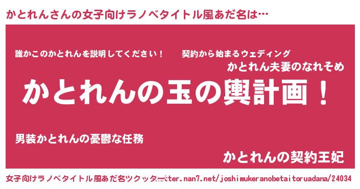 | 恥ずかしいあだ名 | 『プリティーかとれん』『かとちん』 |