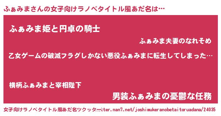 | 意味不明あだ名 | 『住所不定無職ふぁみま(10歳)』 |