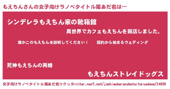 | 男性向けラノベタイトル風あだ名 | 『モエチンアートオンライン』 |