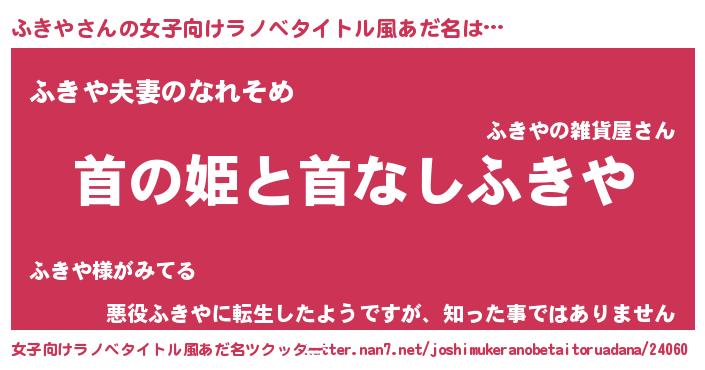 | 男性向けラノベタイトル風あだ名 | 『はたらくふきやさま!』 |