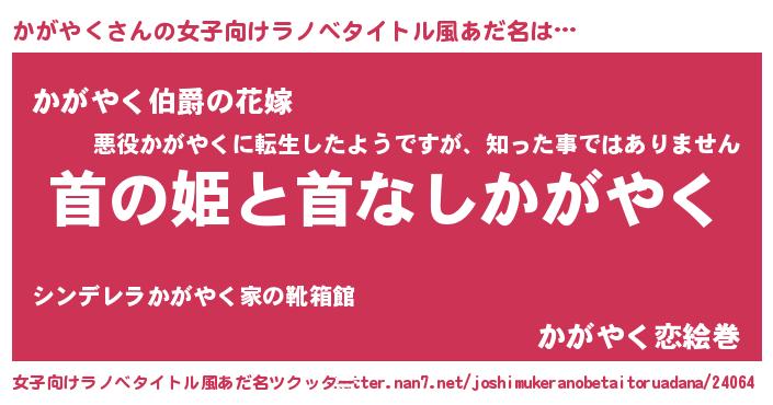 | 男性向けラノベタイトル風あだ名 | 『はたらくかがやくさま!』 |