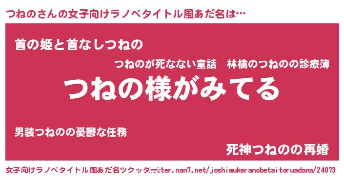 | 男性向けラノベタイトル風あだ名 | 『つねのの嫁は女の子じゃないと思った?』 |